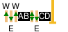 [W=WE=] | A simple station with a westbound island platform and an eastbound platform on the outside. The equals signs indicate platforms and the letters the tracks (here westbound on the left and eastbound on the right). |