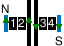 Cross-platform interchange with another line, which is also shown using the appropriate colour. The letters indicate the direction (e.g. N for northbound). In general tracks of other lines on the same level are shown, but not lines that are on a different level. |